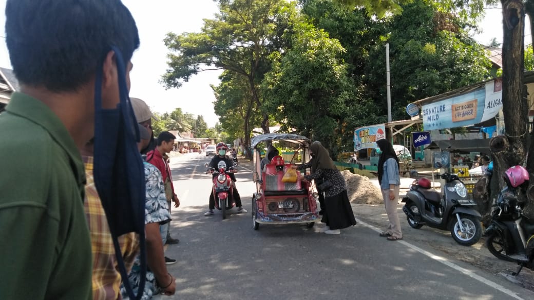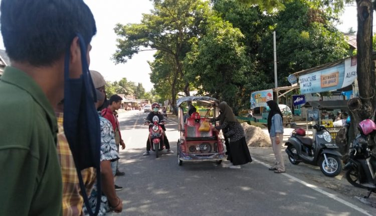 Pembagian dilaksanakan disekitaran pasar Wonomulyo dengan menyasar para tukang becak dan bentor