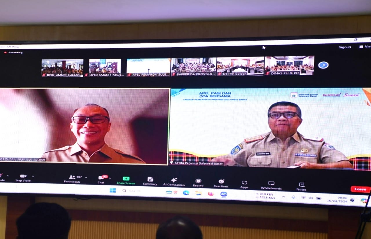 TELEGRAPH.ID, MAMUJU – PJ Gubernur Sulbar Prof. Zudan Arif Fakrulloh berharap Apel Pagi setiap hari Senin ke depan menggunakan model sharing, doa bersama secara zoom.
