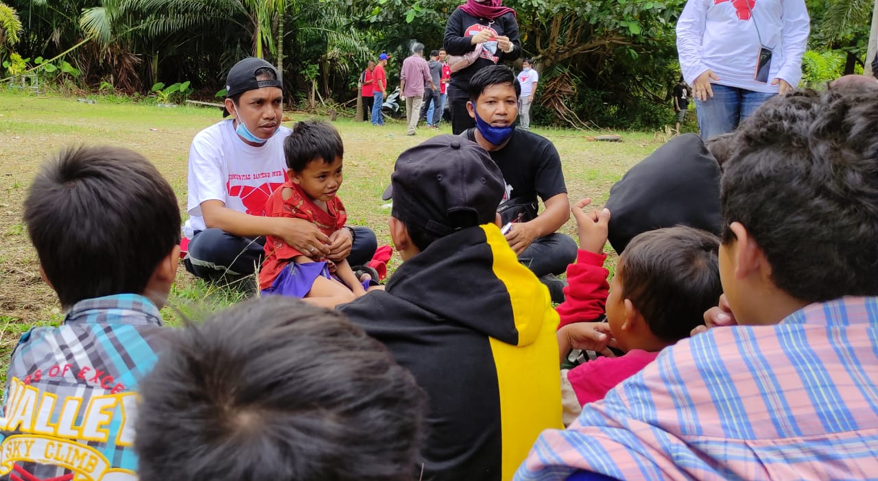 Saat berkunjung anak-anak penyintas sangat gembira atas kehadiran para rombongan Banteng Muda.