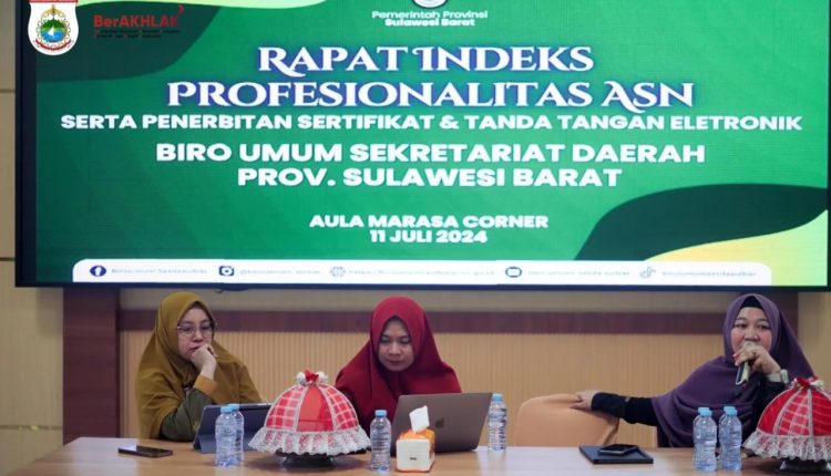 TELEGRAPH.ID, MAMUJU – Biro Umum Sekretariat Daerah Provinsi Sulbar Selenggarakan Rapat Indeks Profesionalitas Aparatur Sipil Negera (ASN) serta Penerbitan Sertifikat dan Tanda Tangan Elektronik, di Marasa Corner Kompleks Perkantoran Gubernur Sulawesi Barat, Kamis (11/7/2024).