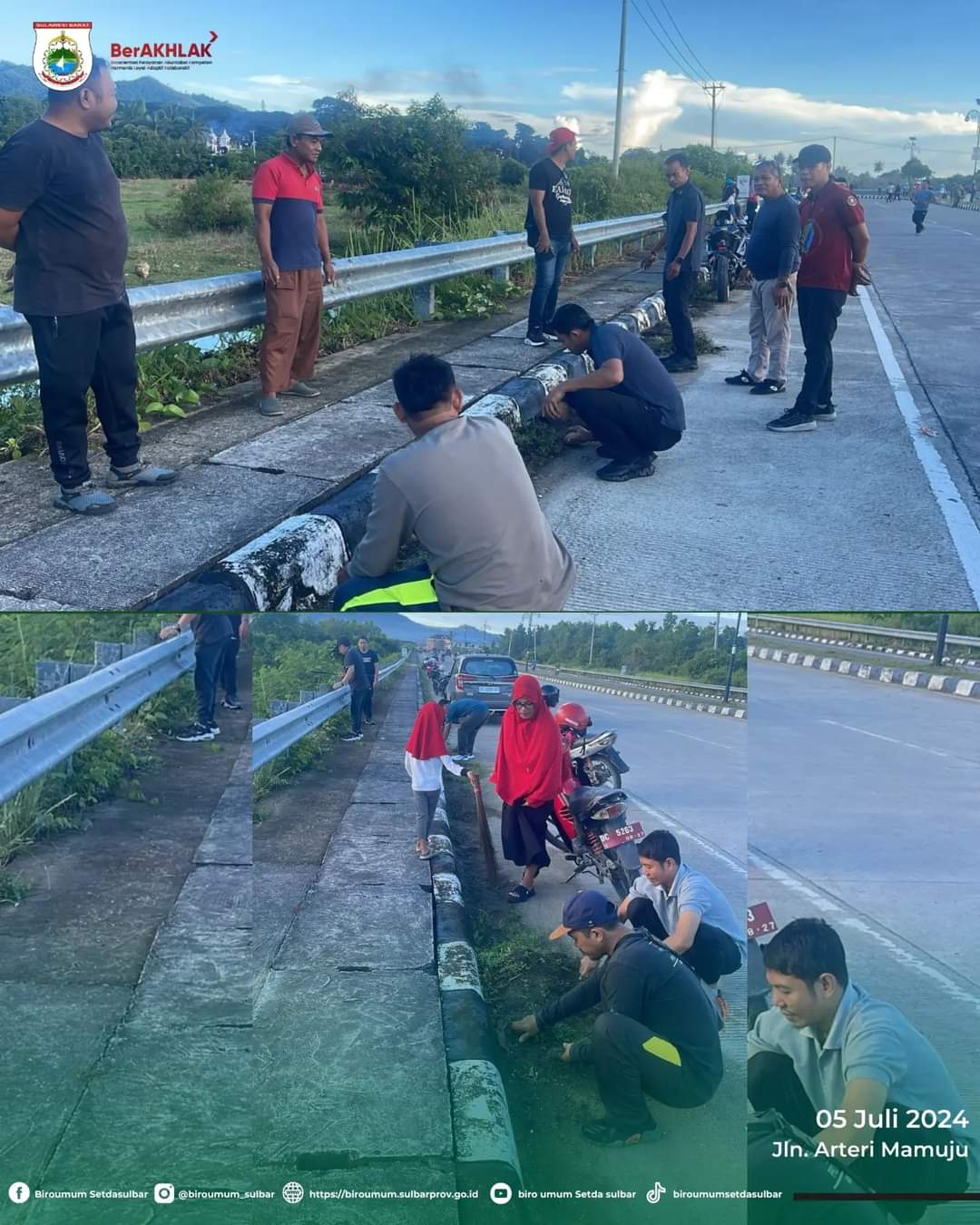 TELEGRAPH.ID, MAMUJU – Kepala Biro Umum Sekretariat Daerah Provinsi Sulawesi Barat Anshar Malle bersama Jajaran melakukan Jum’at bersih di Area Kompleks Perkantoran Gubernur Sulawesi Barat sampai Sepanjang Jalan Arteri Mamuju, Jum’at, 5 Juli 2024.