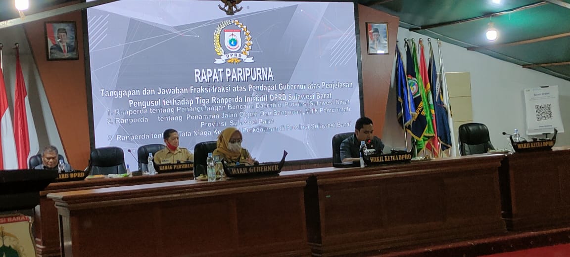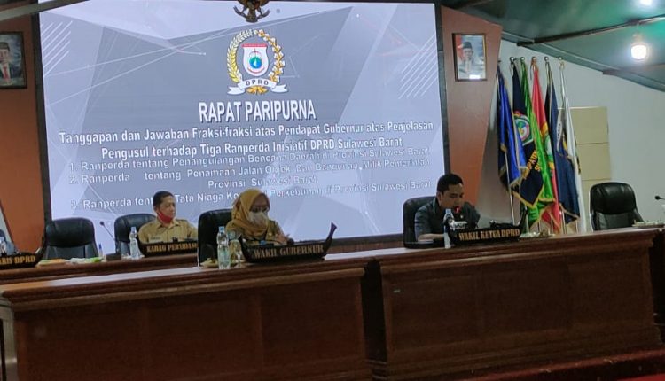 DPRD Sulbar Paripurna Jawaban Fraksi Atas Pendapat Gubernur Terhadap 3 Ranperda Inisiatif Dewan