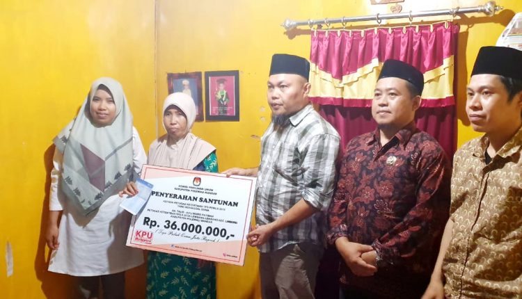 “Kami berharap agar dana santunan ini dapat bermanfaat bagi keluarga korban, sekaligus terima kasih tak terhingga kepada para pahlawan pemilu yang telah gugur dalam melaksanakan tugas mulia,” katanya.