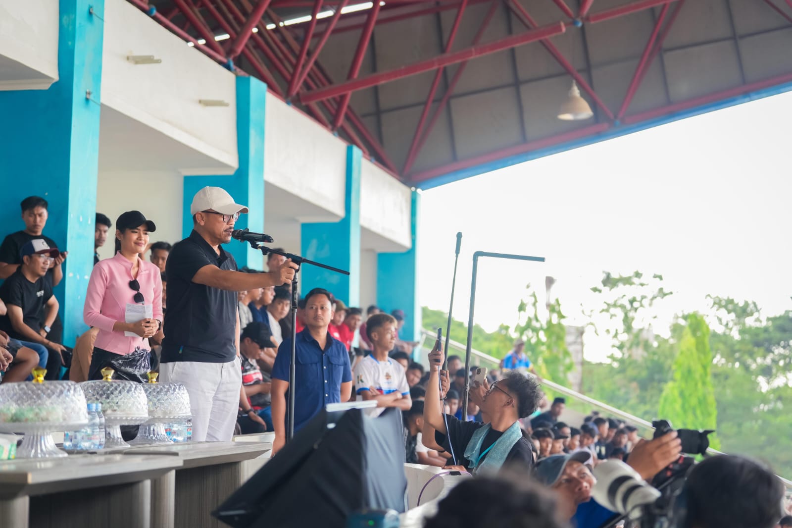 TELEGRAPH.ID, MAMUJU – Gubernur Sulawesi Barat Suhardi Duka menghadiri dan menyaksikan laga final Liga 4 Sulbar 2026 di Stadion Manakarra Mamuju, Selasa 28 April 2026.