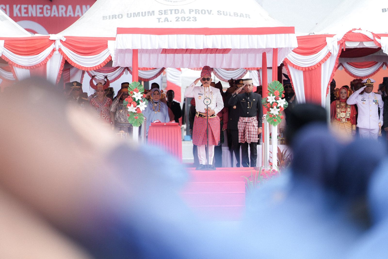 Upacara dalam rangka memperingati Hari Ulang Tahun (HUT) ke-80 Republik Indonesia itu dipimpin langsung oleh Gubernur Sulbar, Suhardi Duka.