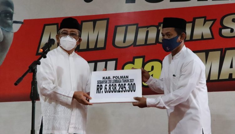 Dalam kesempatan itu, Gubernur Sulbar Ali Baal Masdar menyerahkan bantuan dana hibah senilai Rp. 6,8 miliar untuk 208 lembaga di Kab. Polman.