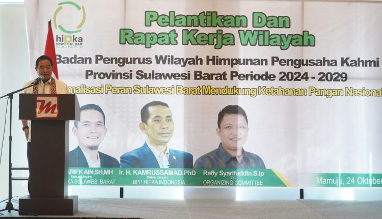 TELEGRAPH.ID, MAMUJU – Pj Gubernur Sulawesi Barat , Bahtiar Baharuddin menghadiri pelantikan Badan Pengurus Wilayah Himpunan Pengusaha Kahmi (Hipka) Sulbar periode 2024-2029 di Hotel Maleo, Kamis 24 Oktober 2024.