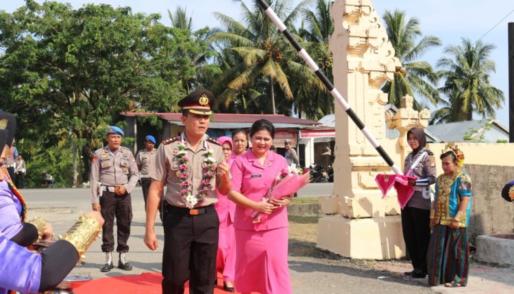Kapolres baru didampingi istri disambut dengan pengalungan bunga oleh anak polisi selanjutnya disuguhkan tarian yang dibawakan oleh Bhayangkari Polres Mamuju Utara dan jajar kehormatan oleh Sat Sabhara serta para pejabat utama Polres Mamuju Utara dan para Kapolsek.