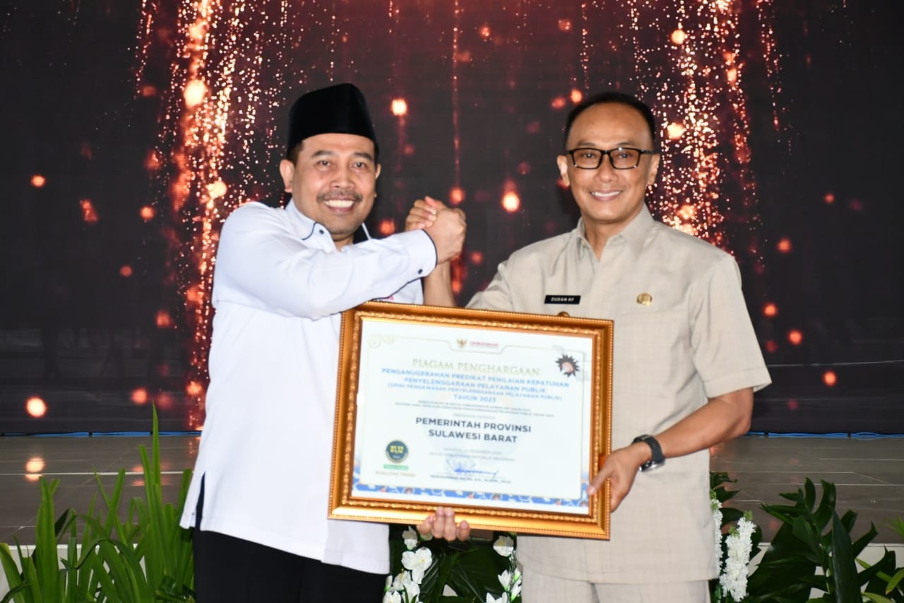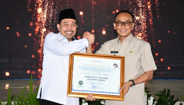 Penghargaan diserahkan langsung oleh Ketua Ombudsman RI Mokhammad Najih, di Graha Sandeq Pemprov Sulbar, Jumat 2 Februari 2024.