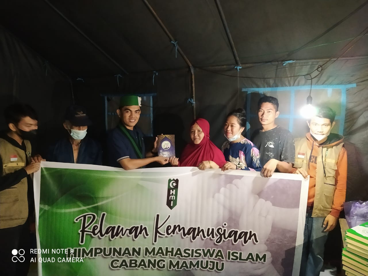 Selain memberikan selimut serta tikar untuk korban, HMI Cabang Mamuju juga memberikan sumbangan Al Qur’an untuk 50 Kepala keluarga yang terdampak banjir bandang di dua tempat.