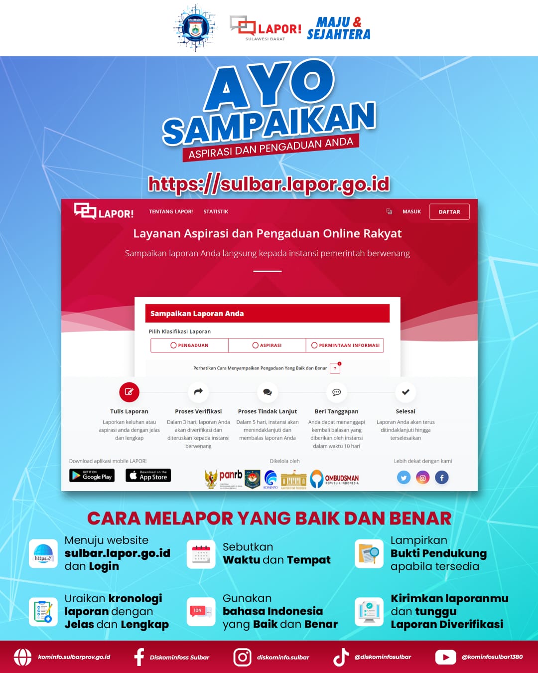 Masyarakat dapat menyampaikan laporan dengan mudah melalui: