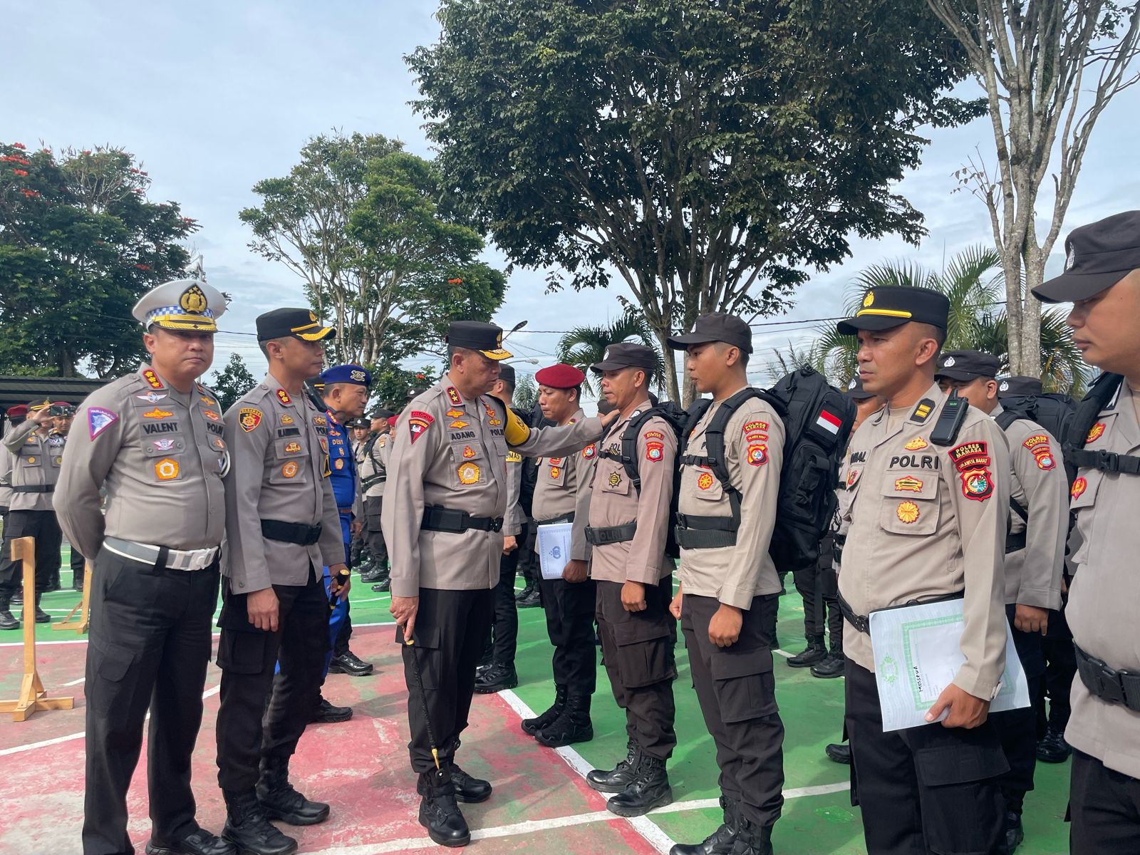 TELEGRAPH.ID, MAMASA – Kepala Kepolisian Daerah Sulawesi Barat Irjen Pol Adang Ginanjar memimpin langsung apel Sarpas personil Polres Mamasa dalam rangka pengamanan tahap pemungutan suara dan rekapitulasi suara di TPS pada Pemilu serentak, Sabtu 10 Februari 2024.