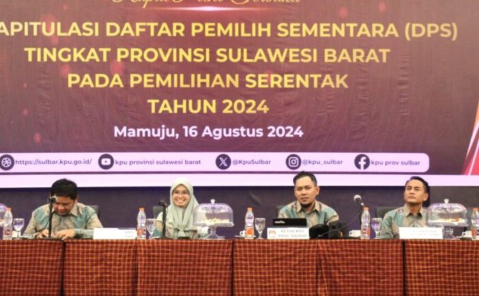 TELEGRAPH.ID, MAMUJU – Komisi Pemilihan Umum (KPU) Provinsi Sulawesi Barat menetapkan Rekapitulasi Daftar Pemilih Sementara (DPS) Pemilihan Kepala Daerah (Pilkada) Serentak 2024 dalam Rapat Pleno Terbuka di Maleo, Jumat 16 Agustus 2024.