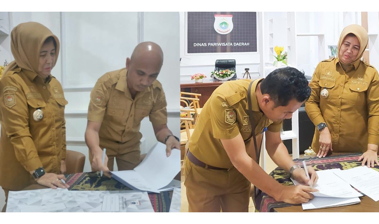 TELEGRAPH.ID, MAMUJU – Kepala Dinas Periwisata Sulawesi Barat Darmawati Anshar melakukan penandatanganan perjanjian kerja tahun 2023 dengan seluruh kepala bidang atau pejabat administrator, Selasa (9/1/2024).