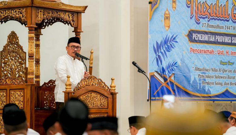 Bangsa Indonesia senantiasa dilindungi dari berbagai situasi sulit di masa depan, kata Suhardi Duka saat memberi sambutan pada peringatan Malam Nuzulul Qur’an 1447 H/2026 M di Masjid Suada, Mamuju, Kamis 5 Maret 2026.