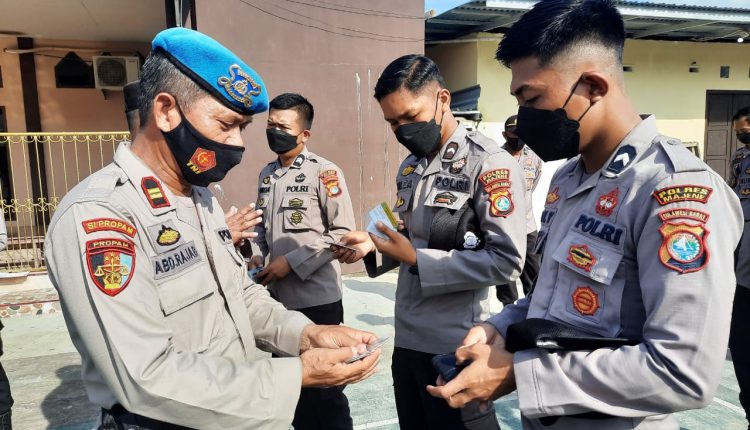 TELEGRAPH.ID, MAJENE – Propam Polres Majene melakukan pemeriksaan mendadak kepada personel polisi seusai apel pagi di Mapolres Majene. Selasa (12/10/2021)