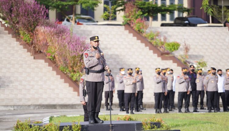 TELEGRAPH.ID, MAMUJU – Kapolda Sulawesi Barat (Sulbar) Irjen Pol Verdianto Iskandar Bitticaca, memimpin apel pagi di Mapolda Sulbar Jl Aiptu Nurman, Kelurahan Mamunyu, Mamuju, Senin (9/5/2022).
