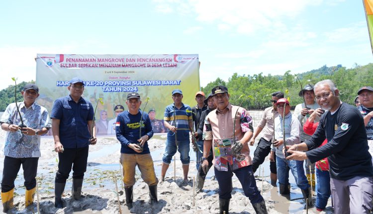 TELEGRAPH.ID, MAMUJU – Setelah melakukan penanaman mangrove di Bebanga, PJ Gubernur Sulawesi Barat Bahtiar Baharuddin bersama Forkopimda Sulbar melanjutkan gerakan Sepekan Menanam Mangrove di Pantai Batu Lombeng, Desa Lebani, Kabupaten Mamuju (8/9/2024).
