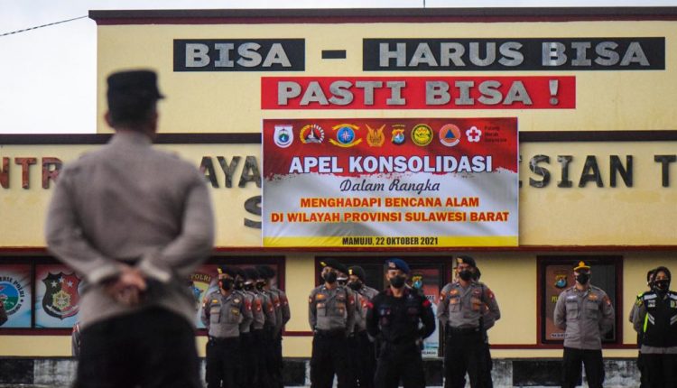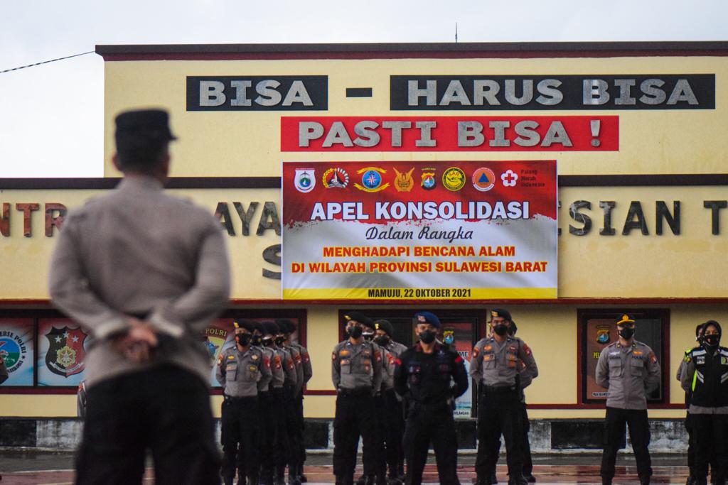 Mengantisipasi terjadinya bencana susulan, Polda Sulbar menggelar apel Konsolidasi di Lapangan Apel Mapolda Sulbar yang dihadiri personil TNI, Brimob, Dishub, Satpol PP, Basarnas, Dinsos, PMI, Dinkes dan BPNB Provinsi Sulbar, Jumat (22/10/2021).