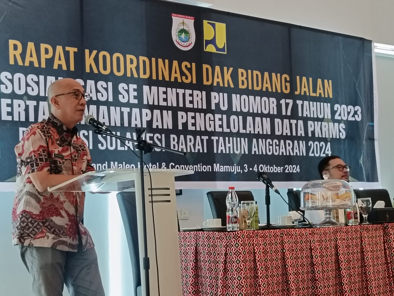 TELEGRAPH.ID, MAMUJU — Dinas Pekerjaan Umum dan Penataan Ruang (PUPR) Pemprov Sulbar menggelar Rapat Koordinasi Dak Bidang Jalan dan Sosialisasi SE Menteri PU Nomor 17 Tahun 2023 serta pemantapan pengelolaan data PMKRS Sulbar Tahun 2024, di Grand Meleo Hotel Mamuju, Kamis 3 Oktober 2024.