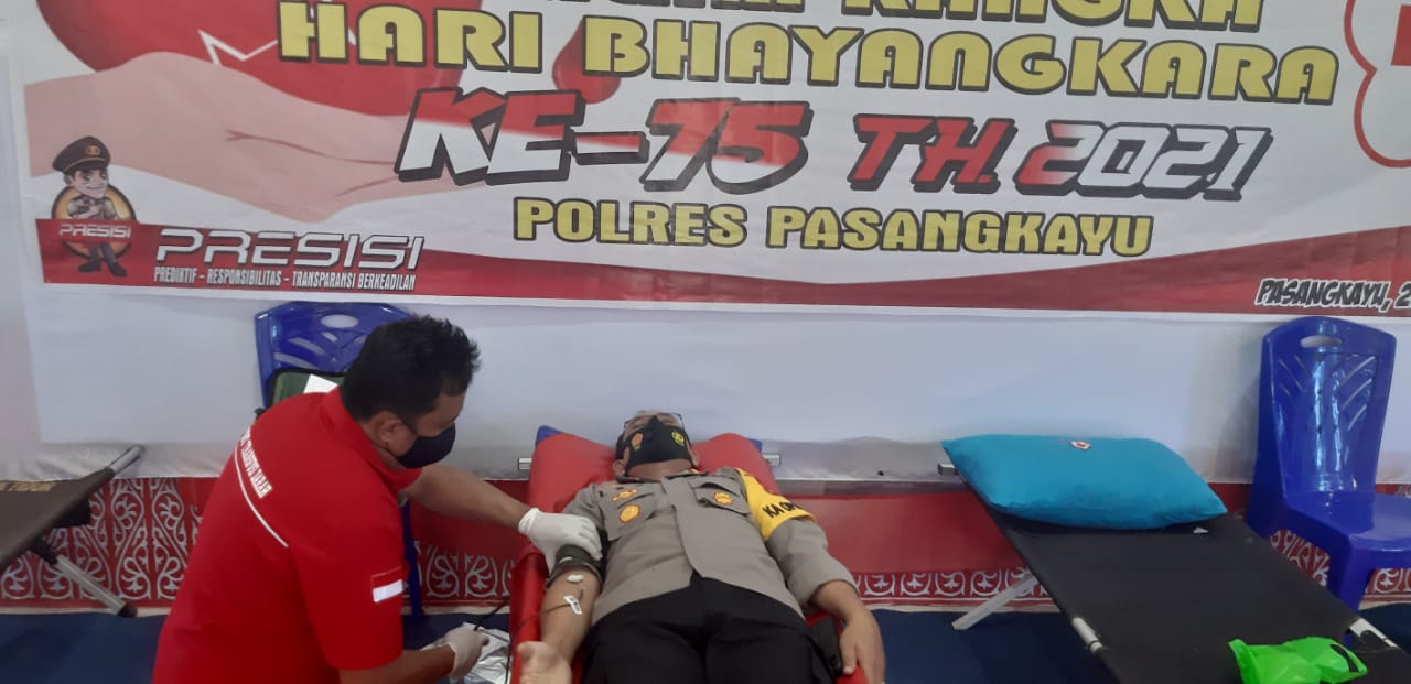 Kapolres Pasangkayu AKBP Leo H.Siagian saat ditemui setelah pelaksanaan Donor darah tersebut mengatakan, kegiatan merupakan rangkaian dalam rangka memperingati Hari Bhayangkara Ke 75 tahun 1 Juli 2021 mendatang.