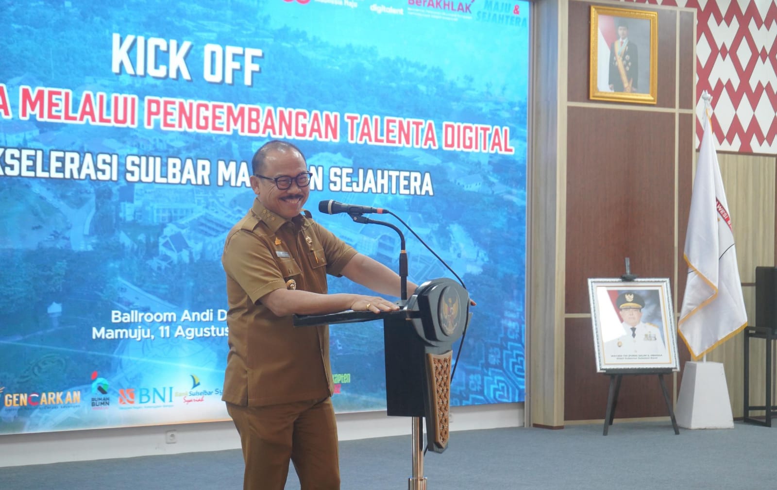 Pernyataan itu disampaikannya dalam acara Kick Off Sulbar Berdaya, yang mengusung pengembangan talenta digital untuk mempercepat kemajuan dan kesejahteraan Sulbar. Kegiatan berlangsung di Ballroom Kantor Gubernur Sulbar, Senin 11 Agustus 2025.