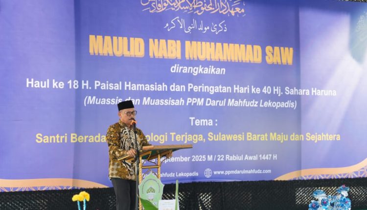 Hal tersebut, disampaikan Gubernur Suhardi Duka saat menghadiri peringatan Maulid Nabi Muhammad SAW yang dirangkaikan haul ke-18 H.Paisal Hamasiah dan peringatan hari ke-40 Hj.Sahara Haruna (Muassis dan Muassisah PPM Darul Mahfudz Lekopadis), Senin 15 September 2025.