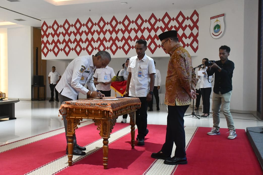 TELEGRAPH.ID, MAMUJU – Para Pimpinan Organisasi Perangkat Daerah (OPD) Lingkup Pemprov Sulbar melakukan Penandatanganan Pakta Integritas dan Perjanjian Kinerja Pejabat Pimpinan Tinggi Pratama dihadapan langsung Gubernur Sulbar, Suhardi Duka, berlangsung di Ballroom Andi Depu Lantai 3 Kantor Gubernur Sulbar, Rabu, 16 Juli 2025 malam.