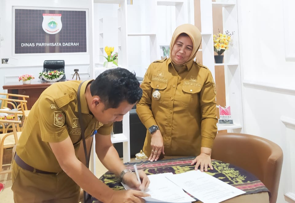TELEGRAPH.ID, MAMUJU – Kepala Dinas Periwisata Sulawesi Barat Darmawati Anshar melakukan penandatanganan perjanjian kerja tahun 2023 dengan seluruh kepala bidang atau pejabat administrator, Selasa (9/1/2024).