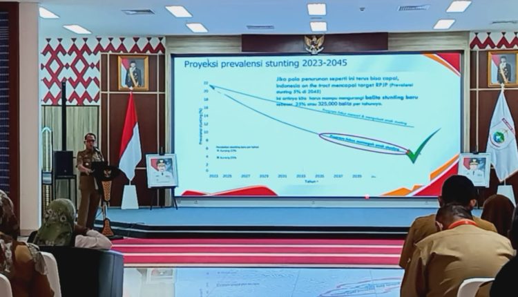 Selain prevalensi stunting, Junda juga menjelaskan potret gambaran kemiskinan di Sulbar dalam Lokakarya Evaluasi dan Persiapan Implementasi Penanganan – Pencegahan Stunting dan Kemiskinan Ekstrem di Aula Andi Depu Gedung Lantai 3 Kantor Gubernur Pemprov Sulbar, pada Senin (16/6/2025).